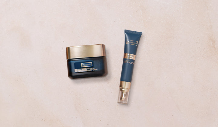 Für die besonders empfindliche Augenpartie ist die KaviarPlus Kollagen Anti-Aging Augencreme die ideale Ergänzung. Sie spendet Feuchtigkeit, reduziert die Faltentiefe bereits nach 14 Tagen* und sorgt dank ihres kühlenden Metall-Applikators für einen frischen Blick – besonders willkommen, wenn uns die Zeitumstellung müde macht.